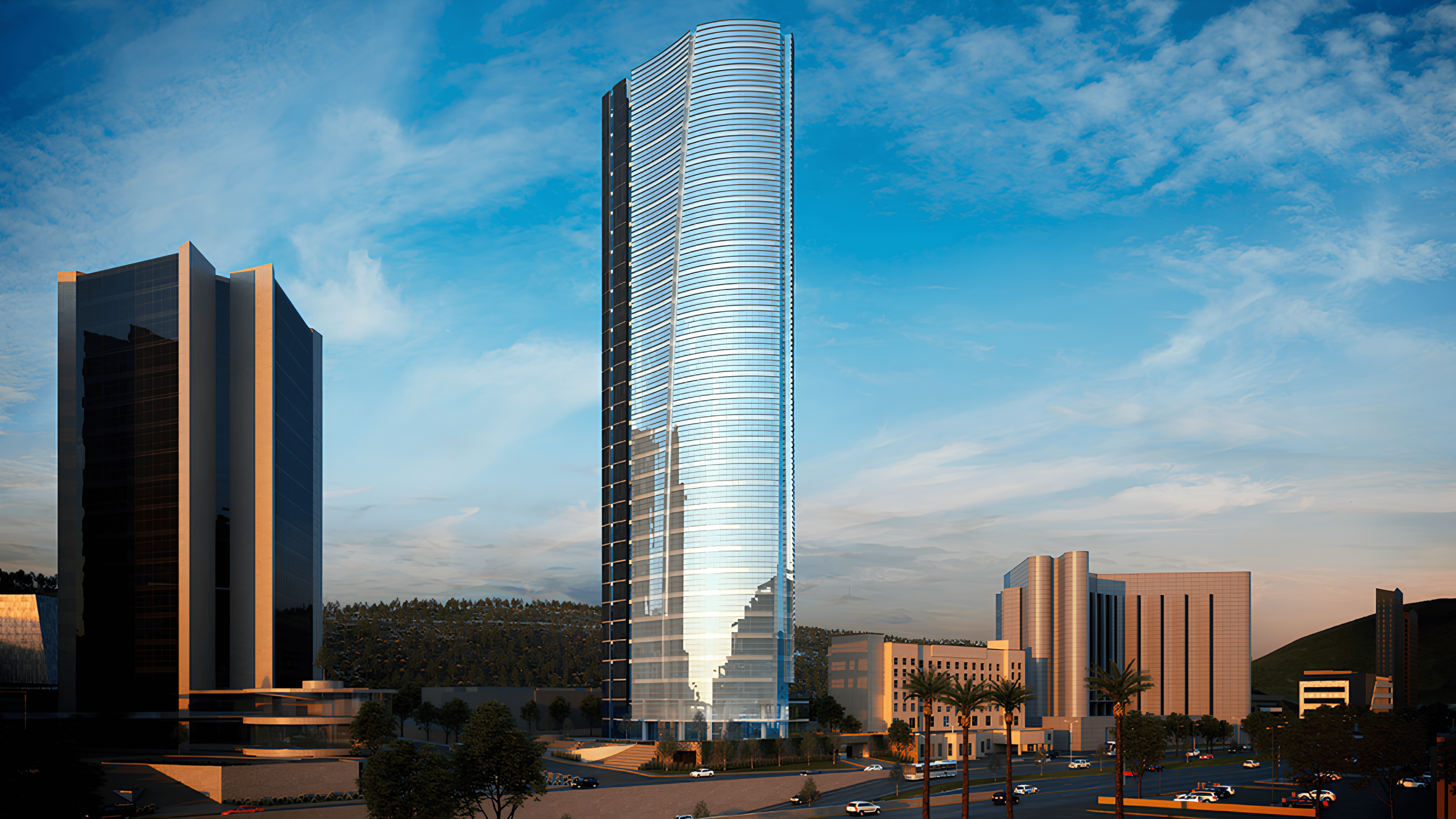 Con 32 Niveles. Su fachada de cristal da una imagen institucional inigualable.
